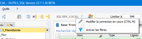Gestion de l'historique Col./Where/Order : affiche une fenêtre des gestion de l'historique des filtres de l'onglet Data.